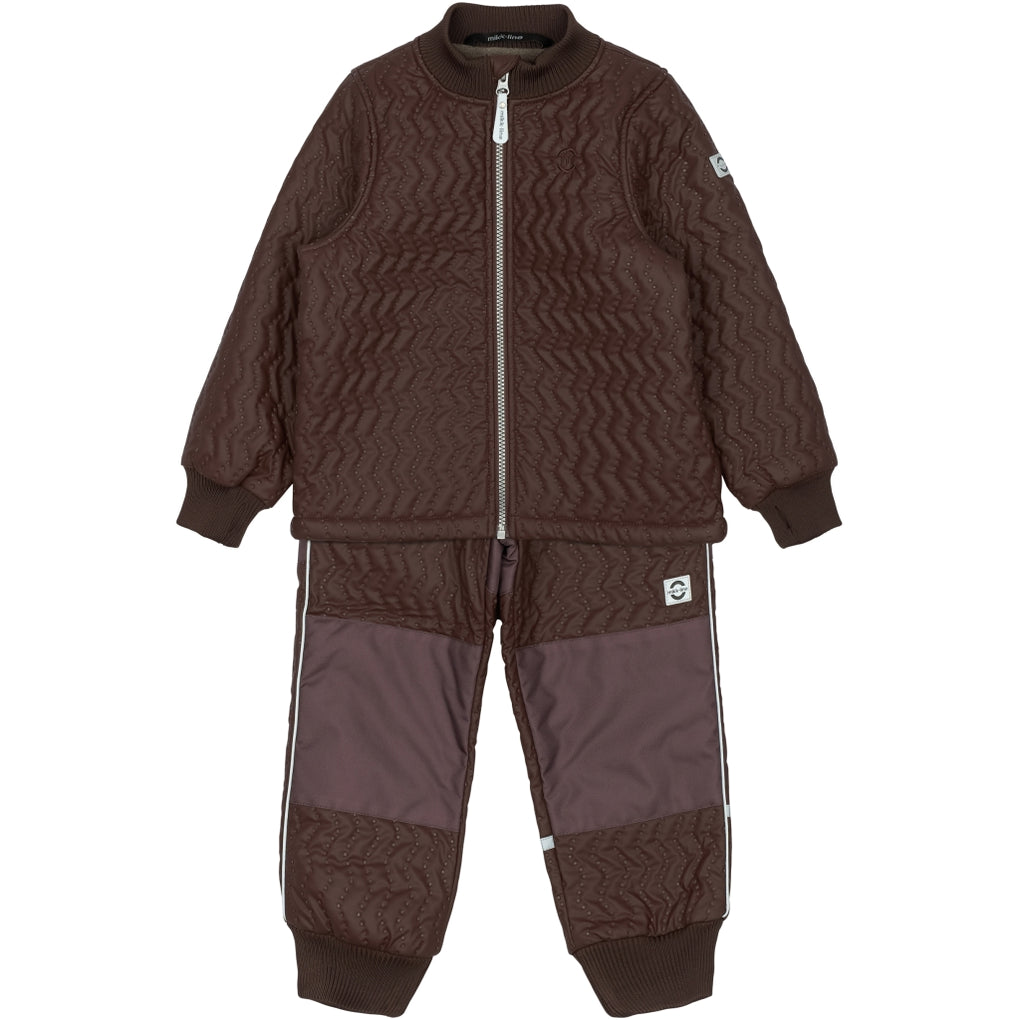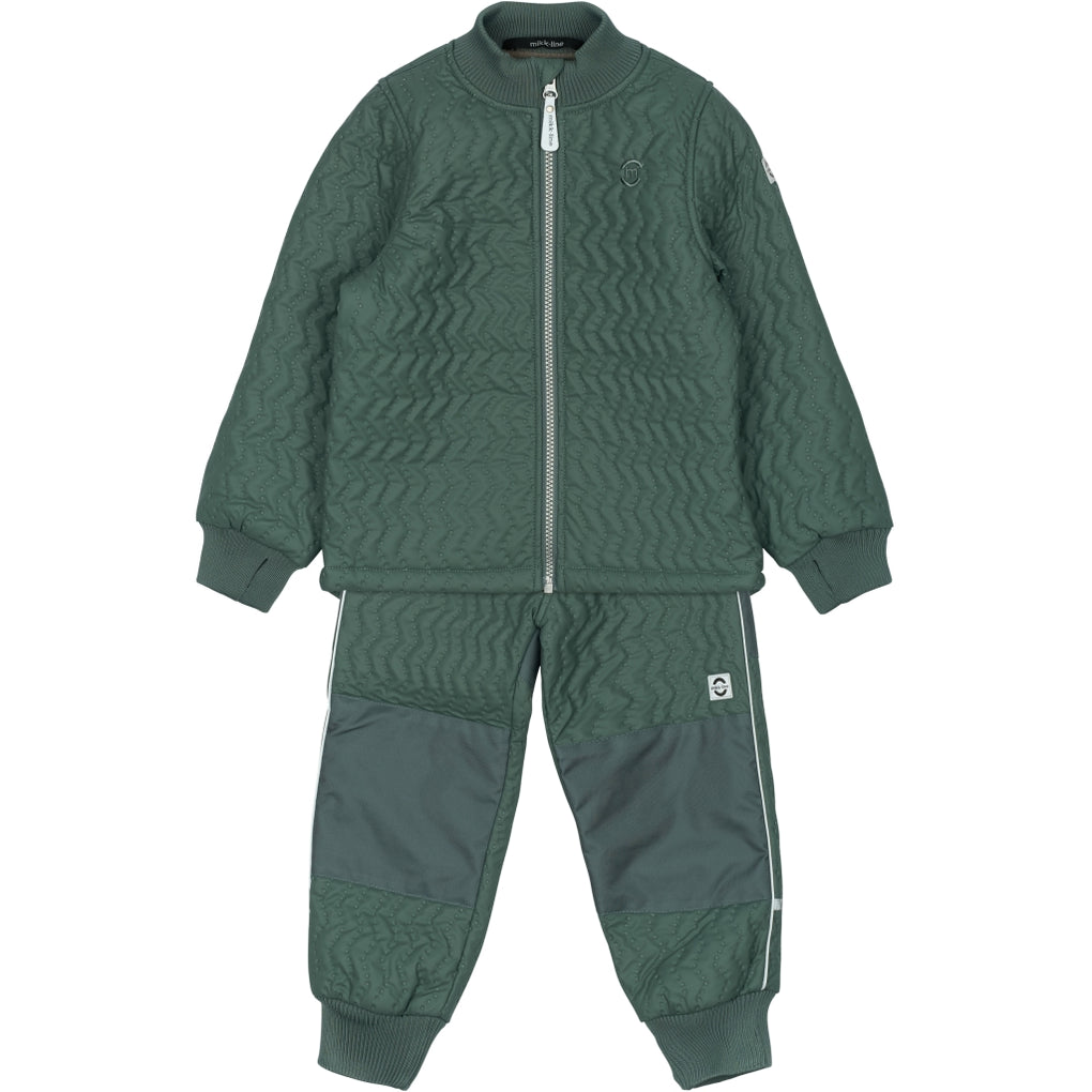 This soft DUVET set is the warmest thermal wear designed by mikk-line, as the jacket has warm fleece lining. The main fabric on both the jacket and pants is waterproof, extra wear-resistent, and coated with BIONIC-FINISH® ECO it is certified by OEKO-TEX® Standard 100 aswell (without PFAS/fluorides). However, the seams are not waterproof, and the breathability is relatively low. As it is extra insulating and waterproof, it is a great outerwear outfit for children to stay warm and enjoy outdoor adventures in cold, windy and wet weather. The set also features a name tag with room for more than one name, so please pass it on and let it be re-loved.