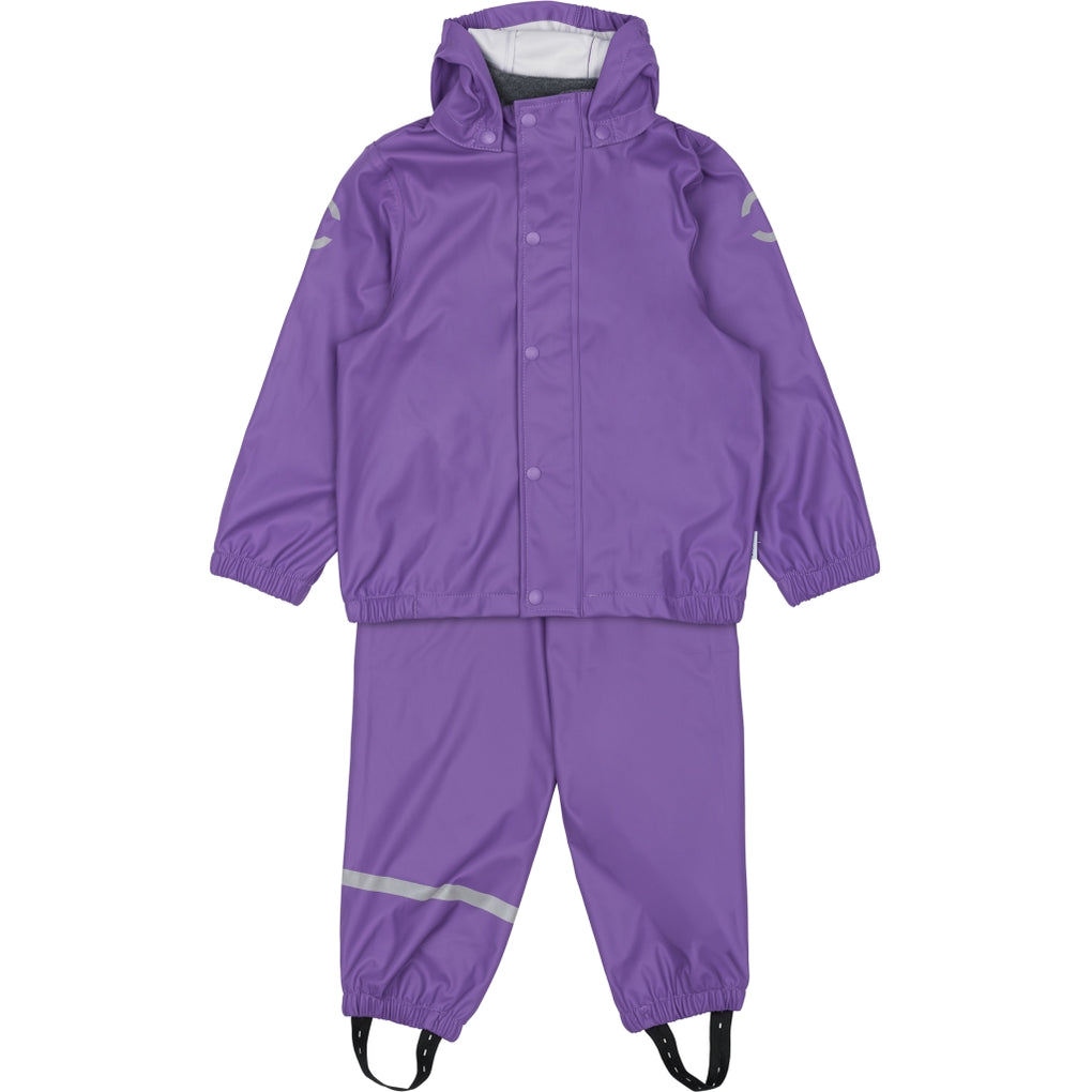 Mikk-line’s classic PU rainwear set without suspenders. This rainwear set is made of waterproof fabric from 66% GRS Recycled Polyester, 34% Polyurethane, and it is designed for children to have fun in the rain, jumping puddles, sliding down the wet slide, playing in the wet sandbox etc. Place the adjustable foot straps underneath the wellies/boots to prevent the pants from sliding up and keep the feet dry. The set also features a name tag with room for more than one name, so please pass it on and let it be re-loved.