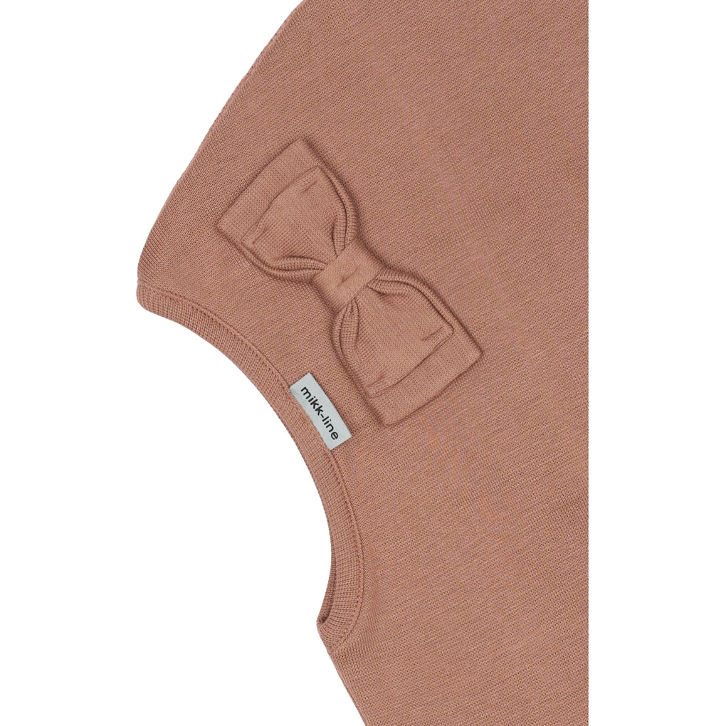 Solid-colored mikk-line balaclava with a cute bow on the front and windstop at the ears. This lovely winter hat covers most of the child’s head, neck, and face, providing protection against cold and wind when the child plays and explores nature under the open sky. The hat is available in double sizes from 74/80 to 134/140 cm (approx. 9 months to 10 years).