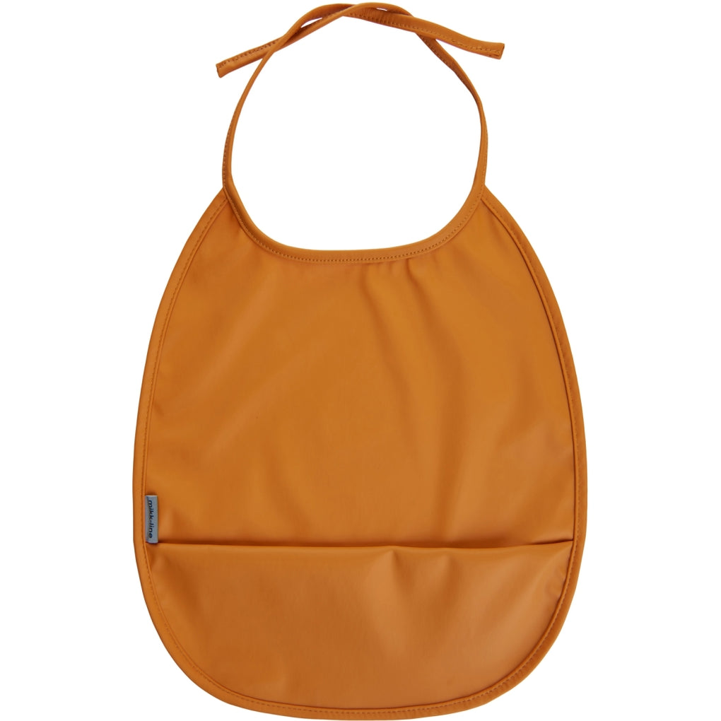 A waterproof PU bib is a necessary accessory for babies and young children at meal time, as it protects the clothes from getting dirty. The bibs are closed with laces, so it always fits perfectly around the neck, without the little ones being able to pull it off themselves. This bib is a short model made of recycled material.