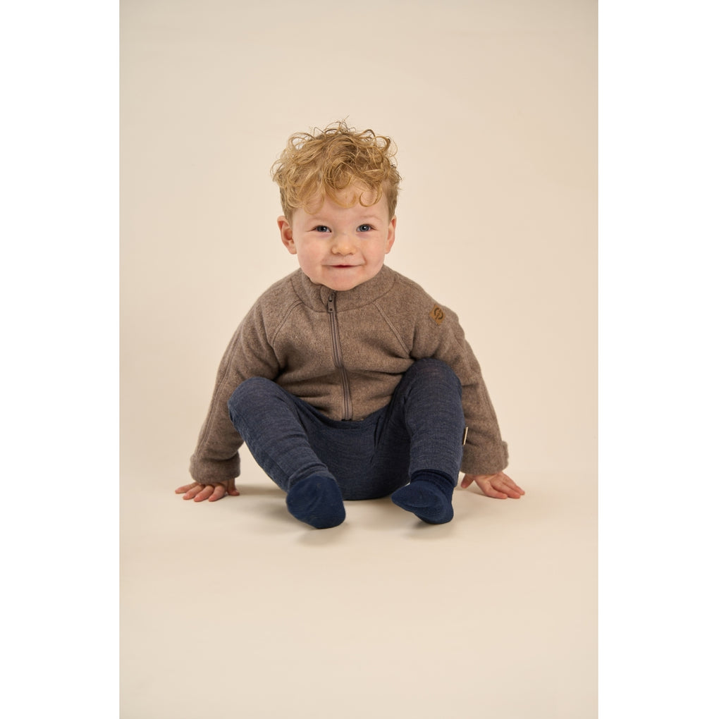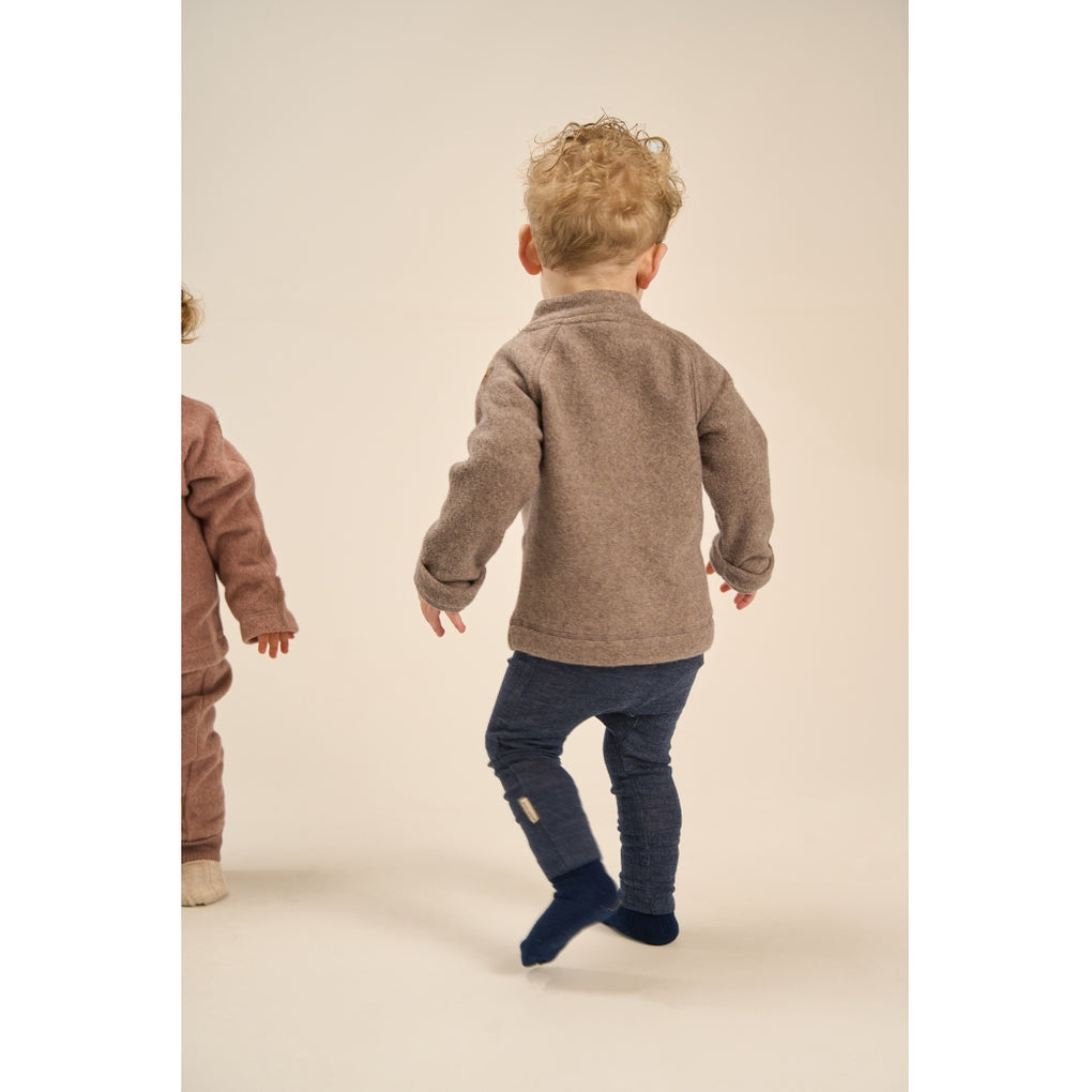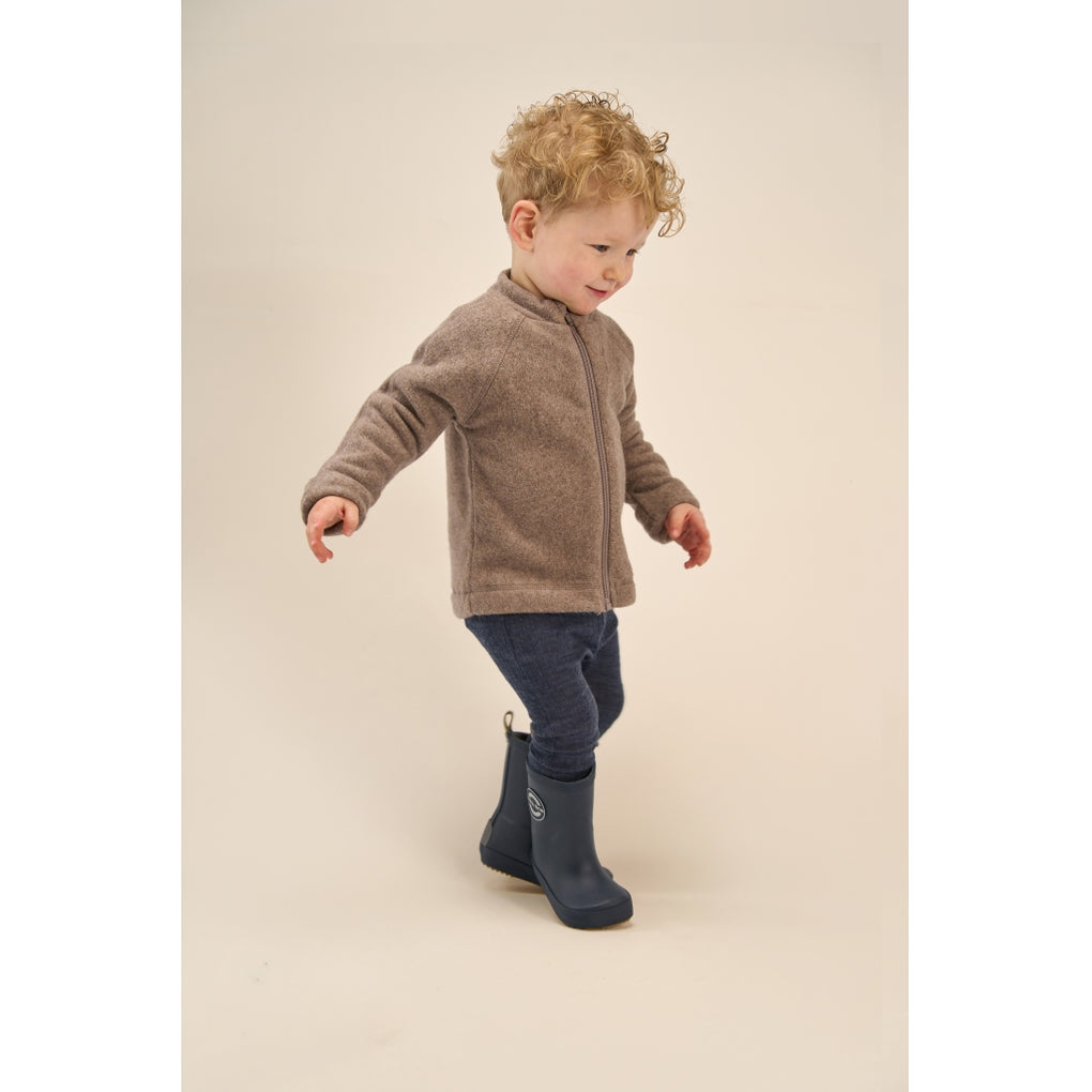 Cotton fleece jacket by mikk-line for new-borns, babies, and toddlers. The jacket is made in a super soft brushed quality with a mix of cotton and polyester. It is breathable, doesn't scratch, and it will keep the child comfortably warm. This cotton fleece jacket is also certified by OEKO-TEX® Standard 100, which guarantees that it is without harmful chemicals. It is a wonderfully comfortable style for the family’s youngest to be cuddled in for a nap, walk, or drive in the cold and cool weather. The fleece jacket is also suitable as a mid-layer for extra warmth underneath rainwear or snowsuits.
