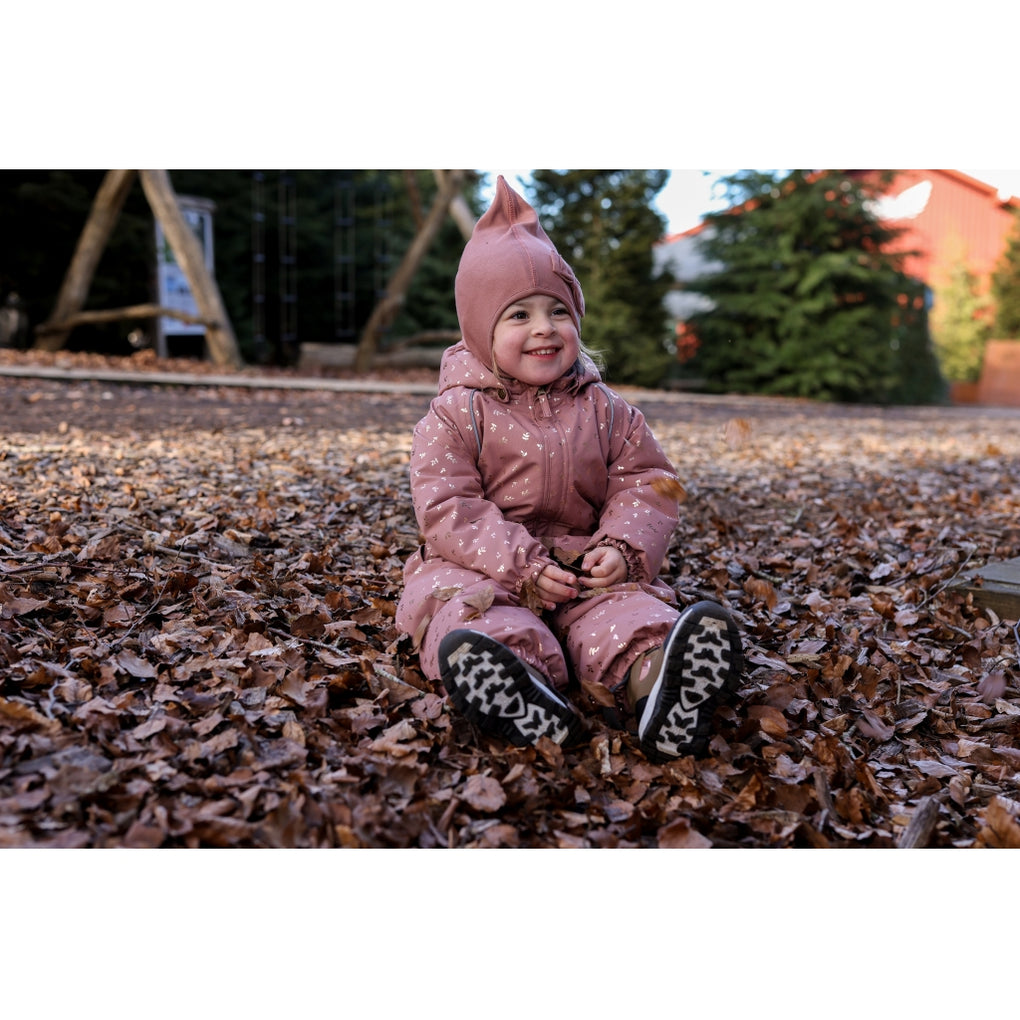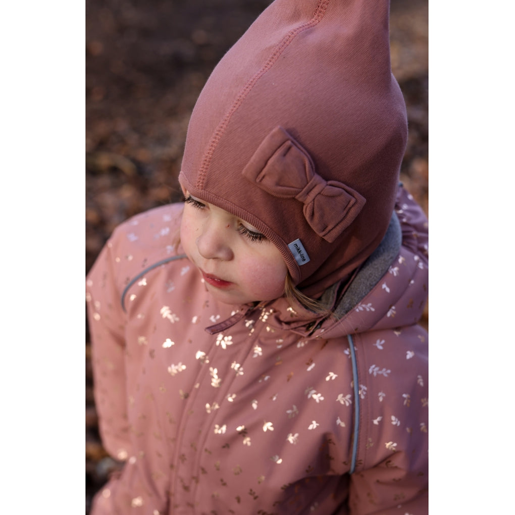 Solid-colored mikk-line balaclava with a cute bow on the front and windstop at the ears. This lovely winter hat covers most of the child’s head, neck, and face, providing protection against cold and wind when the child plays and explores nature under the open sky. The hat is available in double sizes from 74/80 to 134/140 cm (approx. 9 months to 10 years).