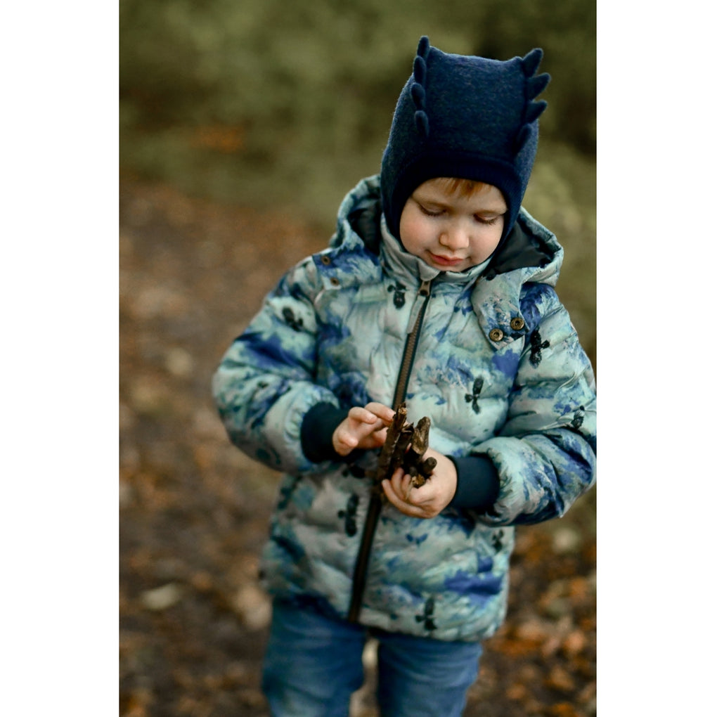 - Windproof and insulating with fluffy polyester filling to keep the child warm and protected against the cold wind.
