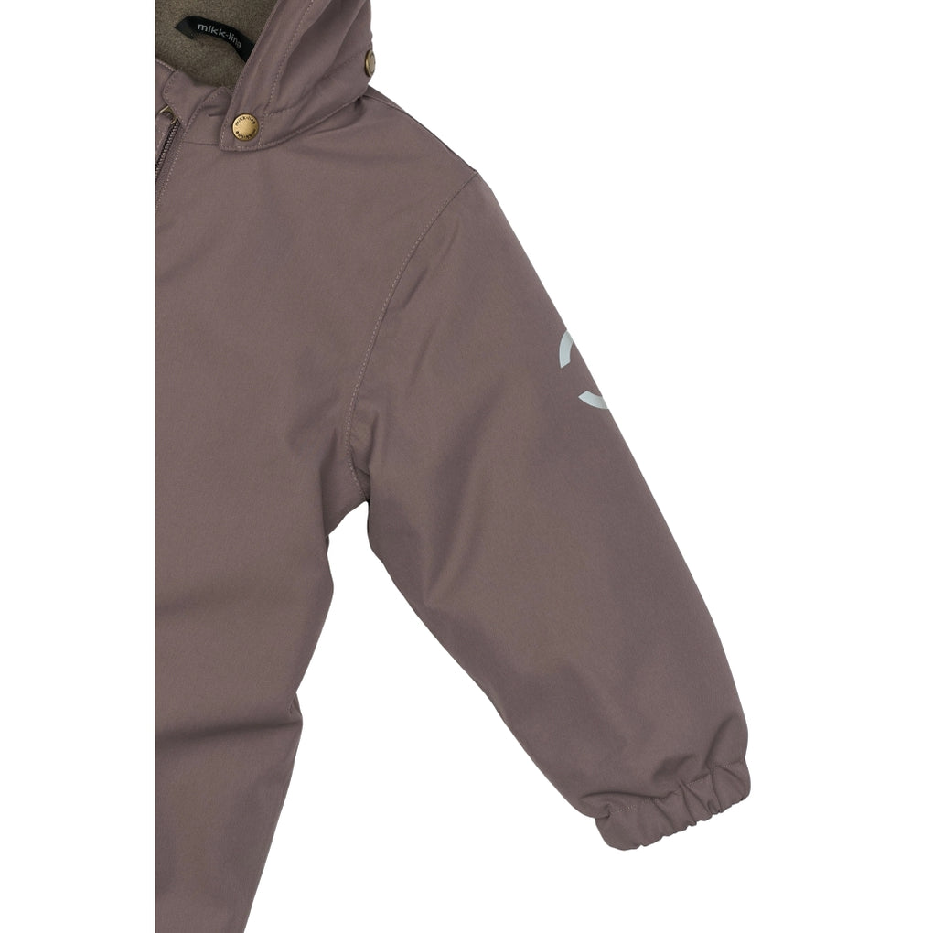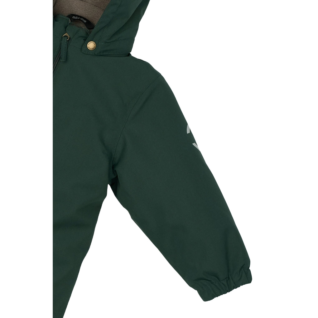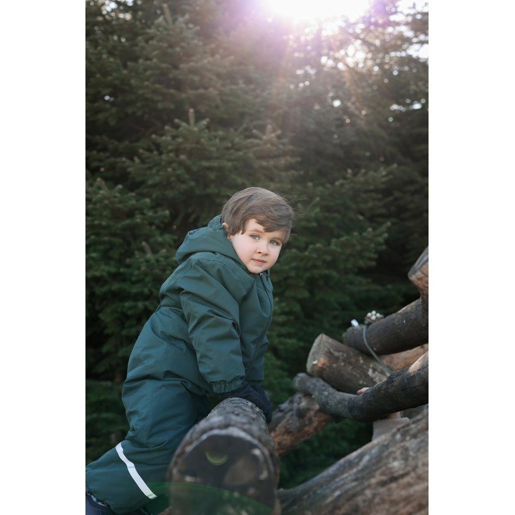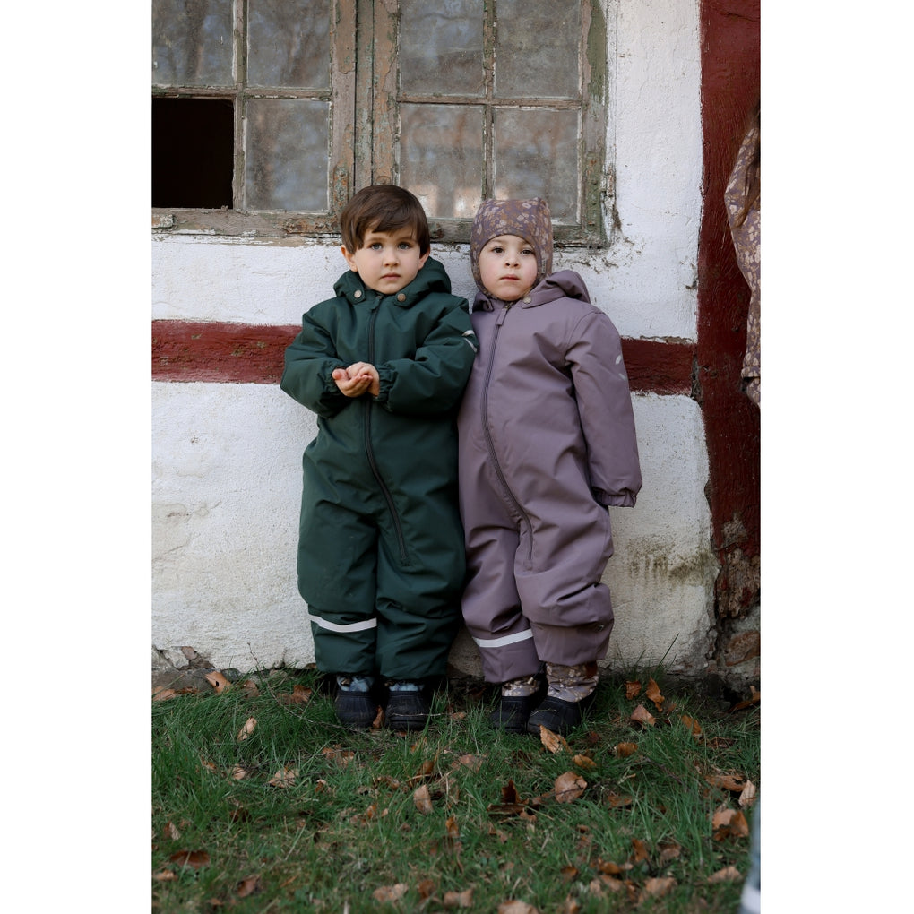 A solid-colored Mikk-Line jumpsuit designed for children to enjoy outdoor activities and adventures. This smart jumpsuit is highly practical and can withstand mud, dirt, rain, wind, and snow. It's an excellent addition to the winter wardrobe to keep your child warm, dry, and comfortable during the wet and cold winter.