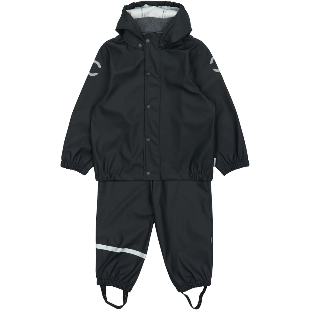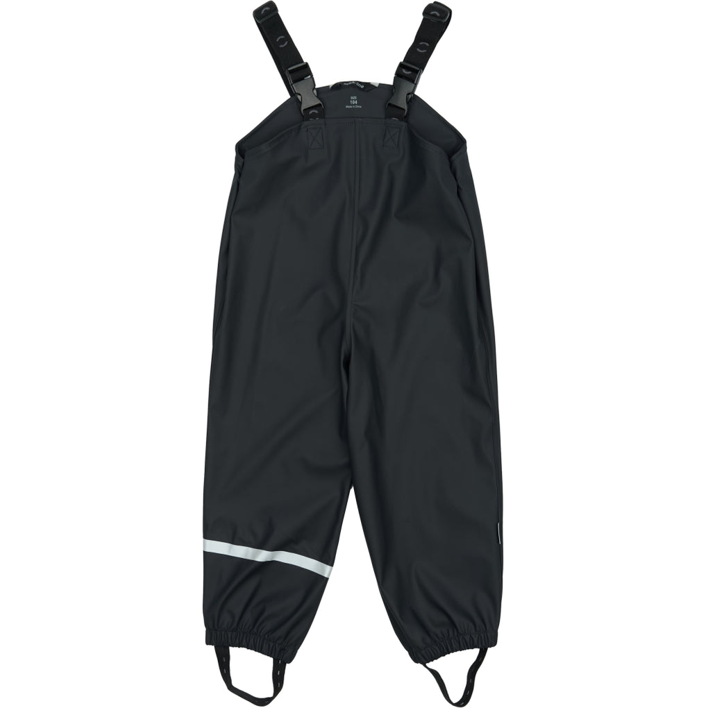 Mikk-line’s classic PU rainwear set with suspenders. This rainwear set is made of waterproof fabric from PU material, and it is designed for children to have fun in the rain, jumping puddles, sliding down the wet slide, playing in the wet sandbox etc. Place the adjustable foot straps underneath the wellies/boots to prevent the pants from sliding up and keep the feet dry. The set also features a name tag with room for more than one name, so please pass it on and let it be re-loved.