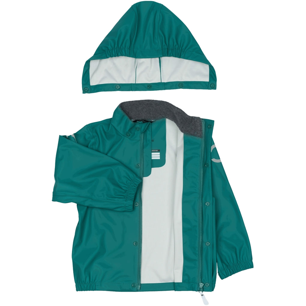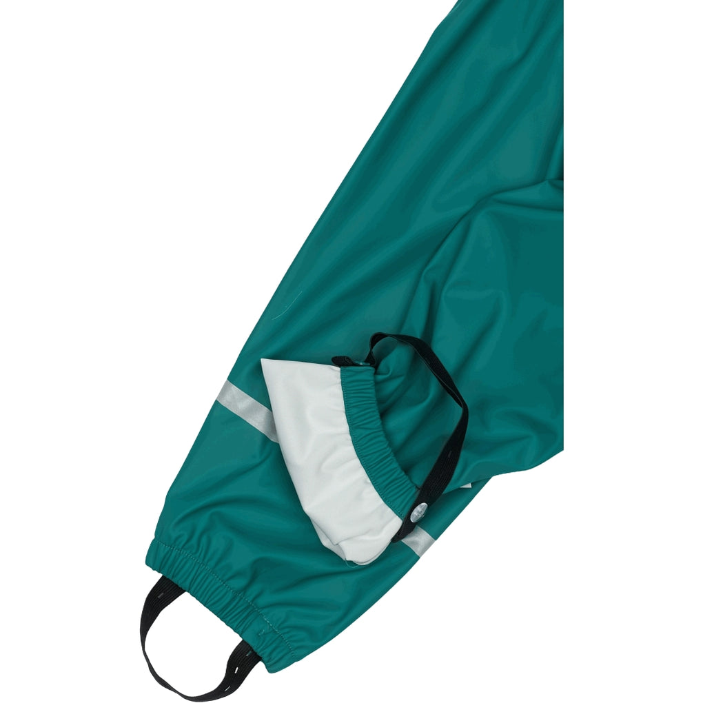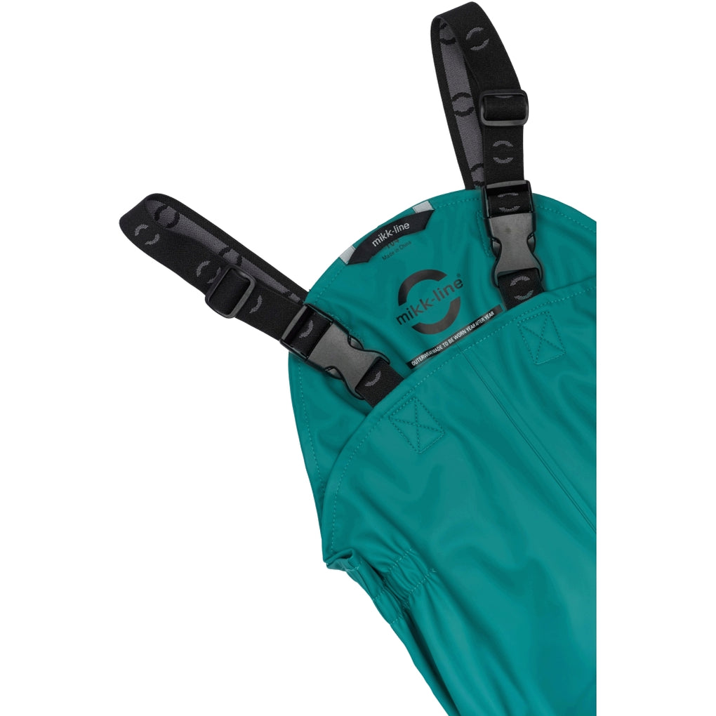 Mikk-line’s classic PU rainwear set with suspenders. This rainwear set is made of waterproof fabric from 66% GRS Recycled Polyester, 34% Polyurethane, and it is designed for children to have fun in the rain, jumping puddles, sliding down the wet slide, playing in the wet sandbox etc. Place the adjustable foot straps underneath the wellies/boots to prevent the pants from sliding up and keep the feet dry. The set also features a name tag with room for more than one name, so please pass it on and let it be re-loved.