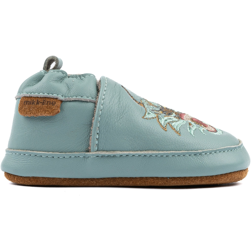 Adorable leather slippers with 3D animal details from mikk-line for babies and toddlers. These charming indoor shoes keep your child's tiny feet comfortably warm while reducing the risk of falling on slippery floors. These slippers offer a wider fit than similar slippers, providing ample space for little feet. However, they also provide a secure grip around the ankles, ensuring they stay put on those small feet.