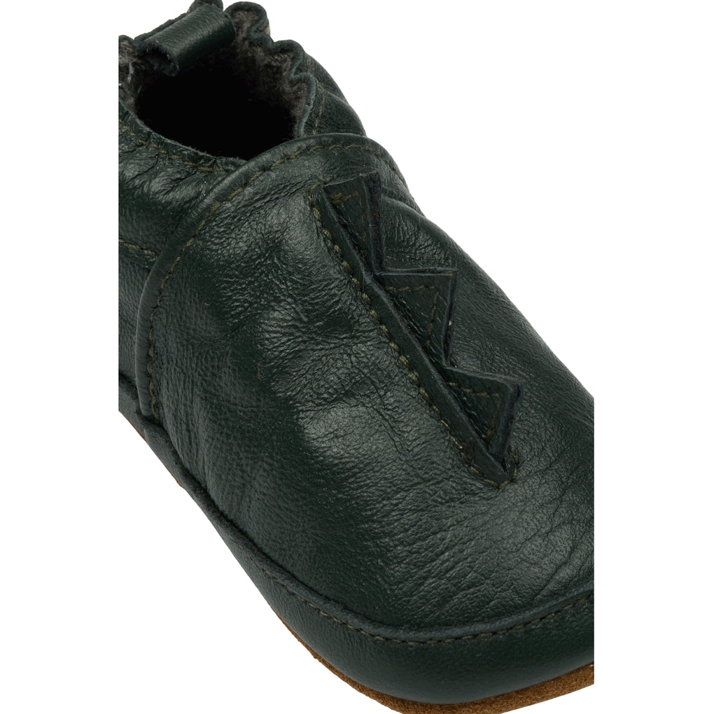 Adorable leather slippers with dino details from mikk-line for babies and toddlers. These charming indoor shoes keep your child's tiny feet comfortably warm while reducing the risk of falling on slippery floors. These slippers offer a wider fit than similar slippers, providing ample space for little feet. However, they also provide a secure grip around the ankles, ensuring they stay put on those small feet.