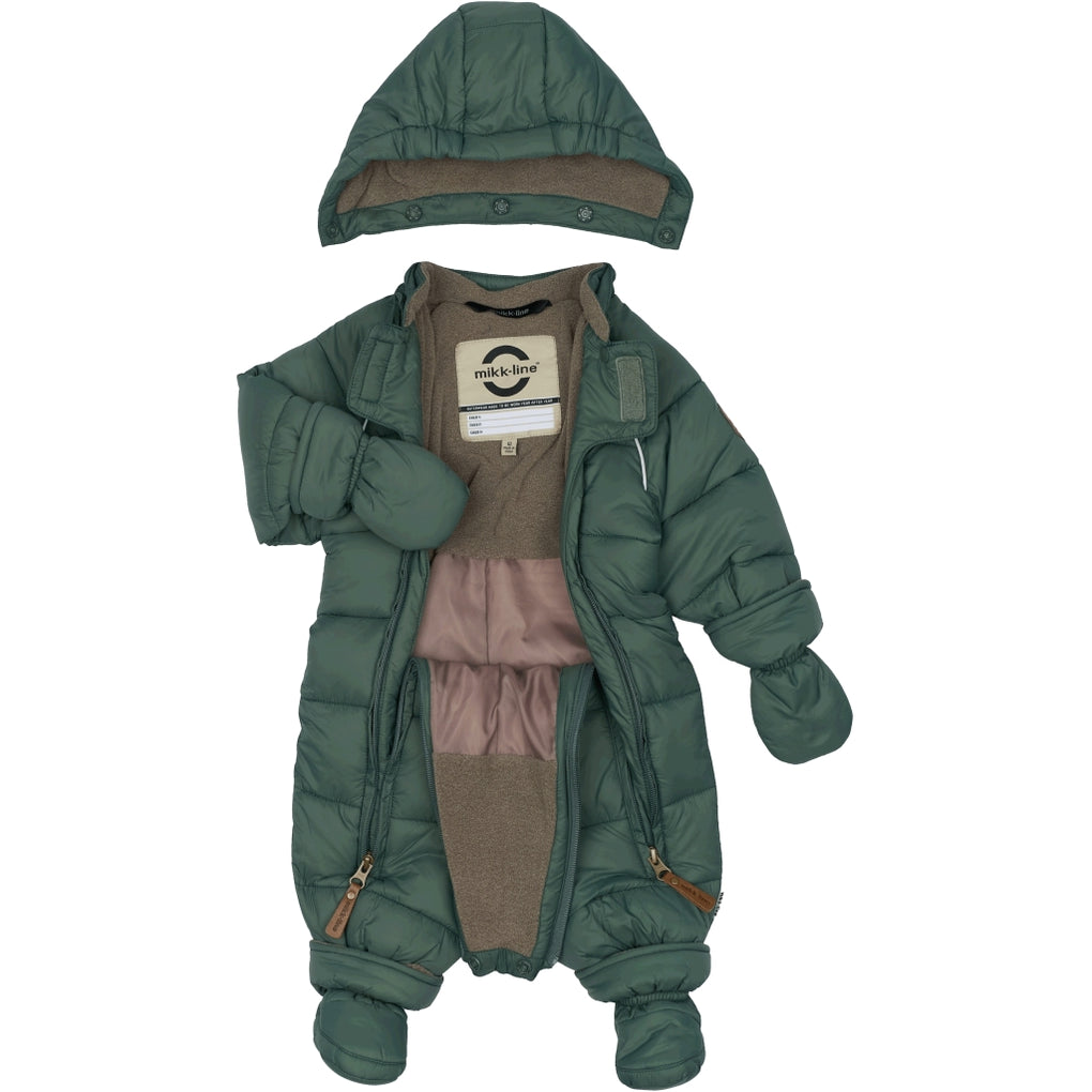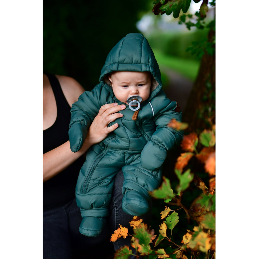 Mikk-line Baby Puffer Suit for children in size 56-80 cm. (approx. newborn to 1 year old). This super soft, quality winter suit is a lightweight yet warm, insulating, and waterproof outerwear item that will snuggle your baby as you take it for a walk in the cold, fresh air.