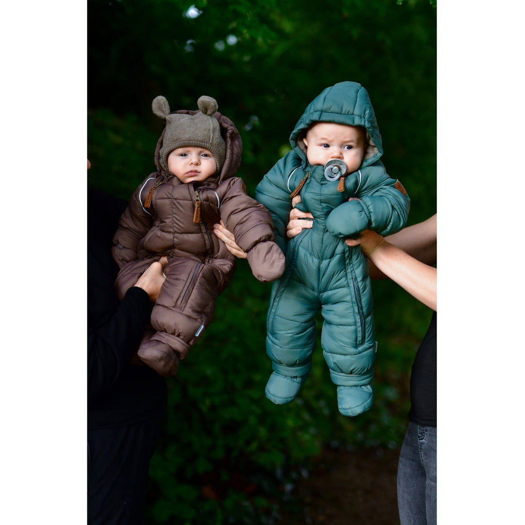 Mikk-line Baby Puffer Suit for children in size 56-80 cm. (approx. newborn to 1 year old). This super soft, quality winter suit is a lightweight yet warm, insulating, and waterproof outerwear item that will snuggle your baby as you take it for a walk in the cold, fresh air.