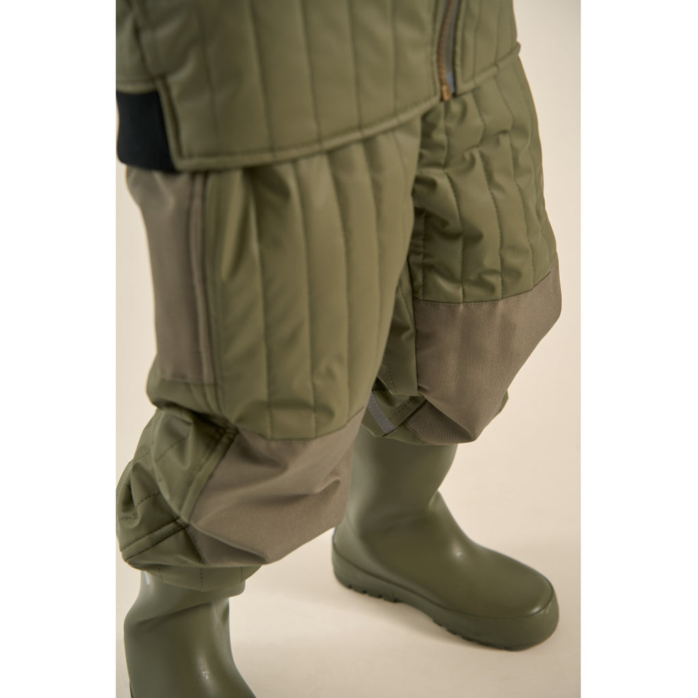 Cool and quilted DUVET termal pants from mikk-line, designed for boys to stay warm, dry, and enjoy outdoor adventures in-between seasons with chilly and humid weather. The pants have a silky soft PU leather surface, which is water-repellent as it is coated with fluorine-free BIONIC-FINISH® ECO. The pants also have warm insulating filling, but low breathability. They also feature a name tag with room for more than one name, so please pass them on and let them be re-loved. Pair them with the DUVET Boys Jacket for a complete thermal outfit.