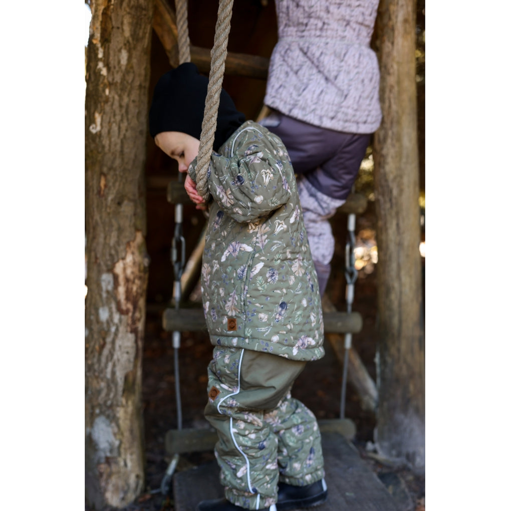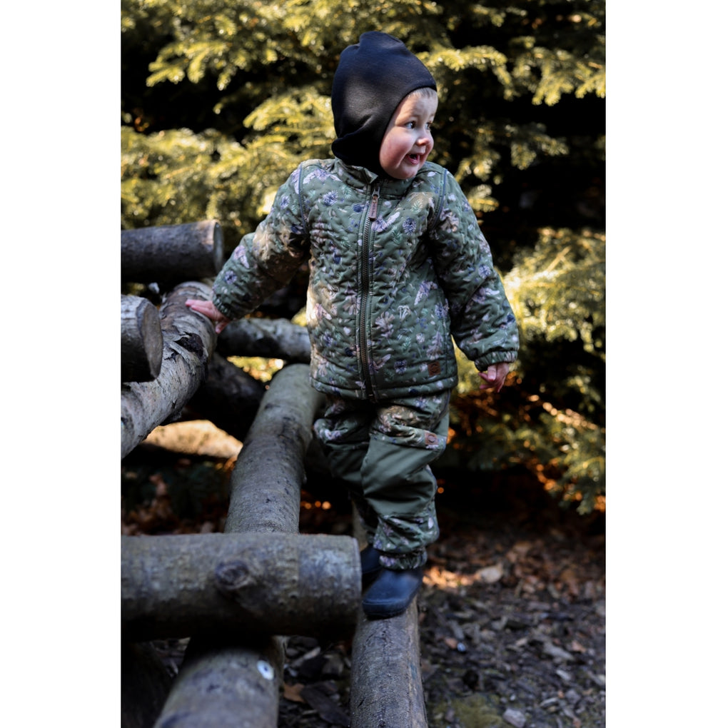 Charming Thermal+ set from mikk-line, designed a cool and captivating AOP (all-over print) for boys. This insulating thermal set has waterproof fabric and BIONIC-FINISH® ECO coating, but the seams are not waterproof. The fabric is wear-resistent, and it has a moderate breathability. All in all, it is a great outerwear choice for girls to stay warm, dry, and enjoy outdoor adventures in-between seasons with chilly and wet weather. The set also features a name tag with room for more than one name, so please pass it on and let it be re-loved.