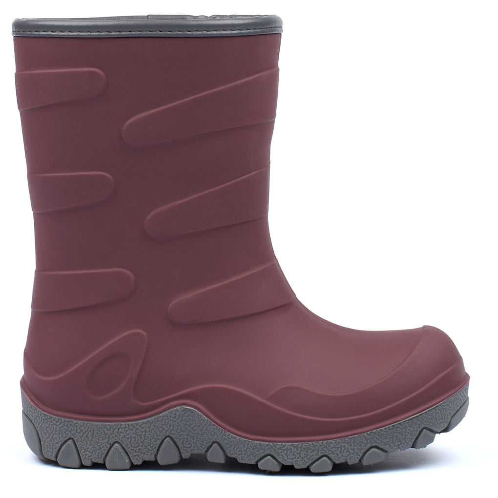 Solid coloured mikk-line thermal boots designed to provide exceptional insulation and guard against snow, slush, and rain. They will ensure the feet stay protected in cold and wet weather conditions. They are made in wear-resistant and waterproof natural rubber, and they are of course phthalates free.