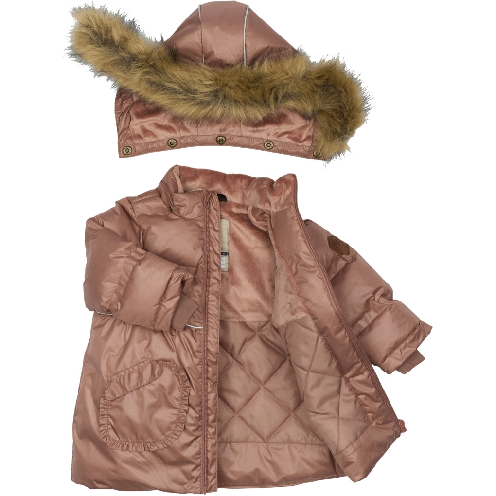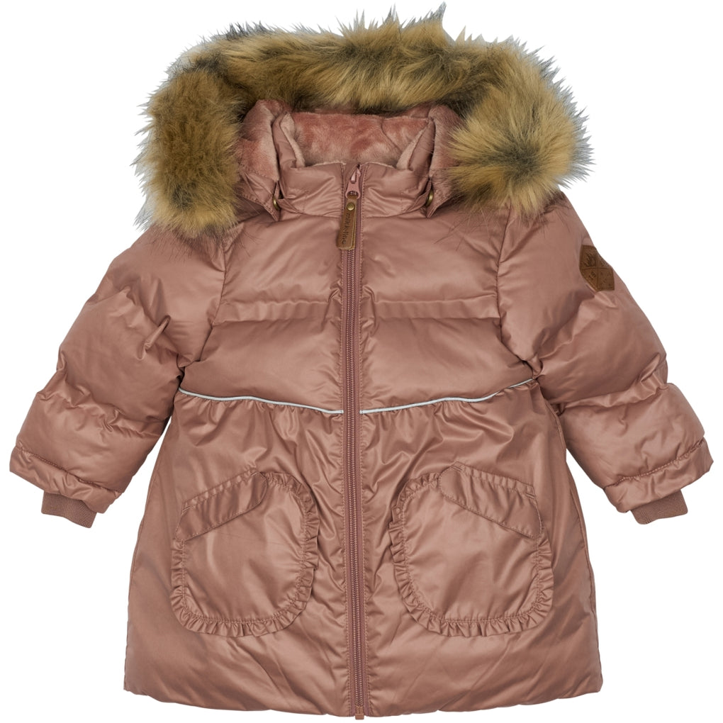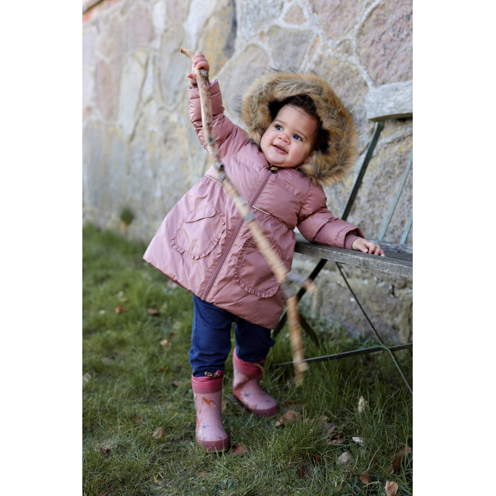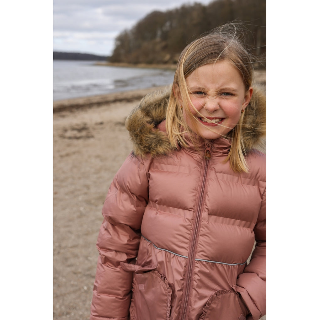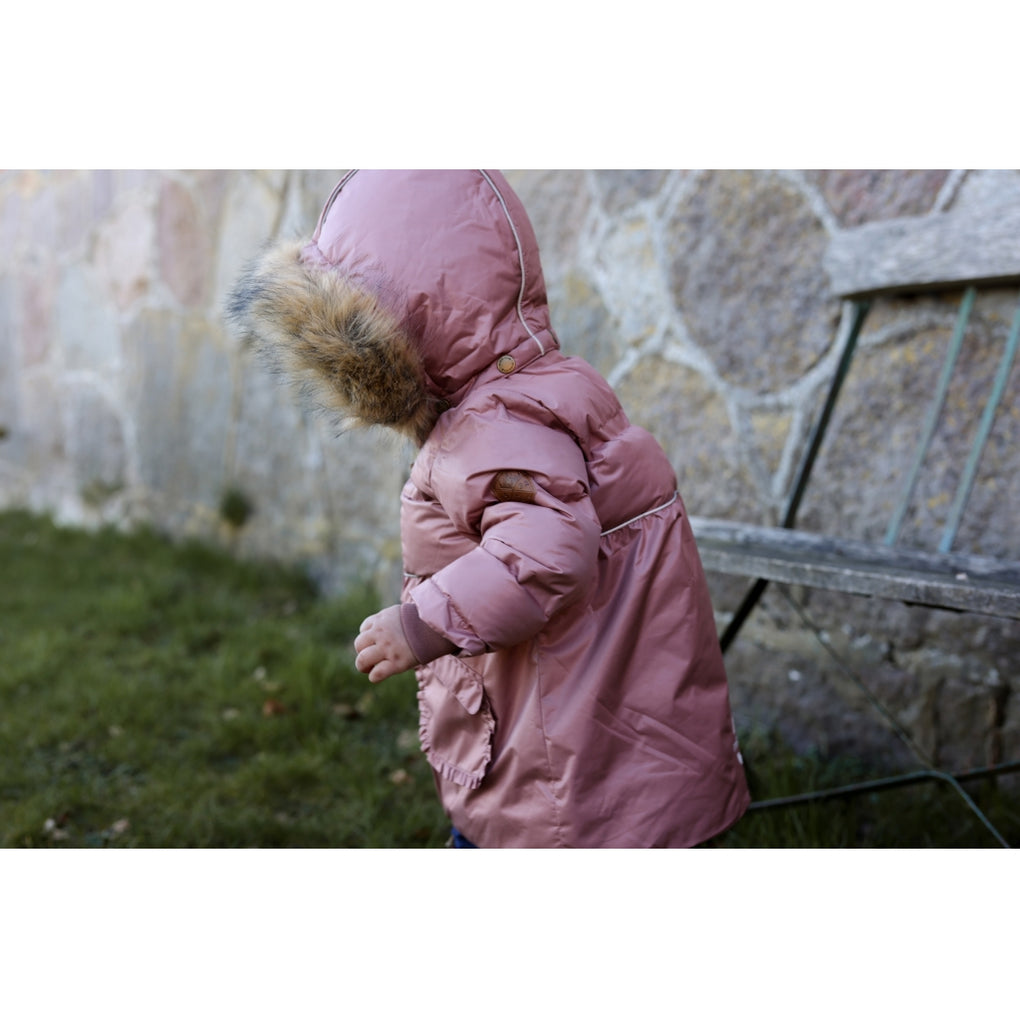 Mikk-line Puffer Jacket for girls in size 80-140 cm. who love outdoor activities and adventures. It is a trendy, lightweight winter jacket that will keep your child warm and comfortable in cold autumn and winter weather. The jacket has fluorine-free coating (BIONIC-FINISH® ECO).