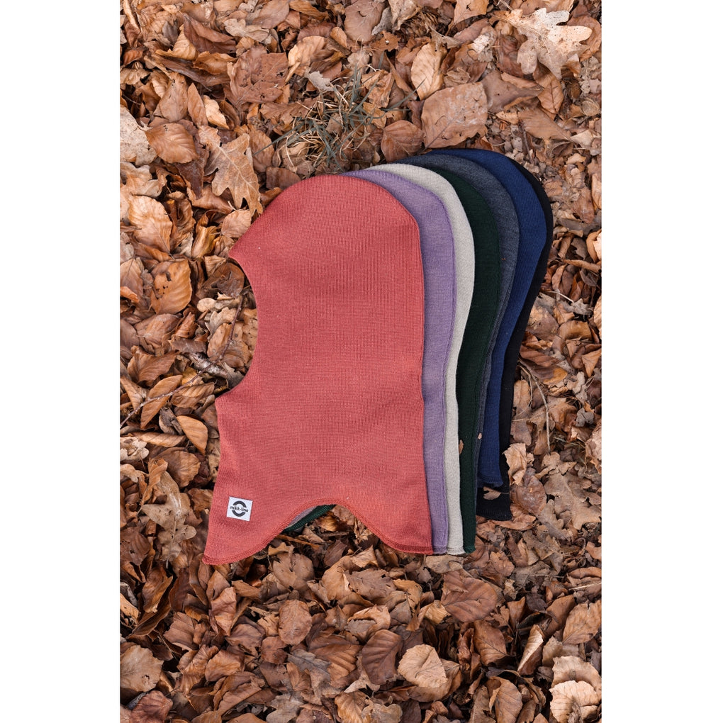 Solid-coloured mikk-line balaclava with wind stop for children to stay warm as they enjoy outdoor activities and adventures. This double layered winter hat is made from a blend of merino wool and acrylic on the outside, and cotton on the inside. The cotton is gentle on your child's skin, providing comfort throughout the day. Merino wool ensures that your child's head stays warm without feeling overheated, and acrylic fibres enhance the hat's durability. The balaclava covers most of the head, neck, and face, so it is ideal to keep the child nice and warm in cold weather. It is certified by OEKO-TEX® Standard 100, which guarantees that it is without harmful chemicals .