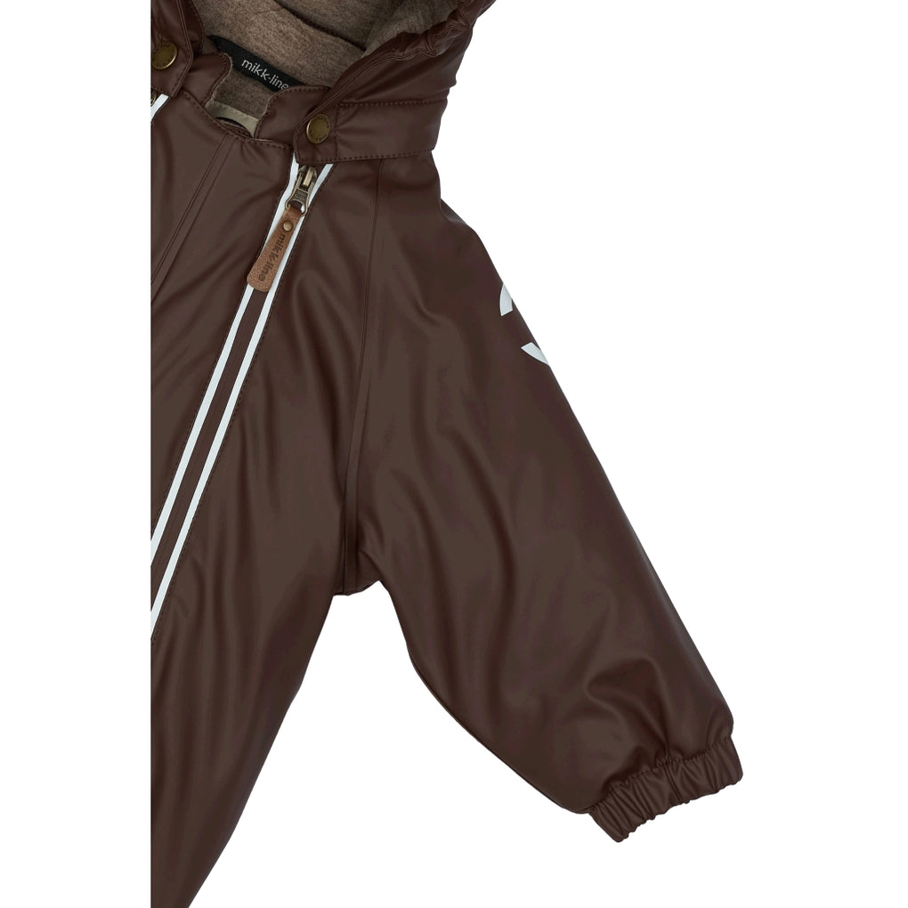 Mikk-line’s baby PU snowsuit is made for children to have fun in puddles and on playgrounds. It is a great outerwear item for wet and cool weather, where you want something warmer than regular rainwear, but it is too warm for a traditional snowsuit.