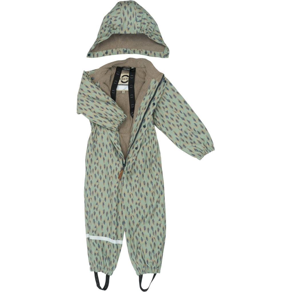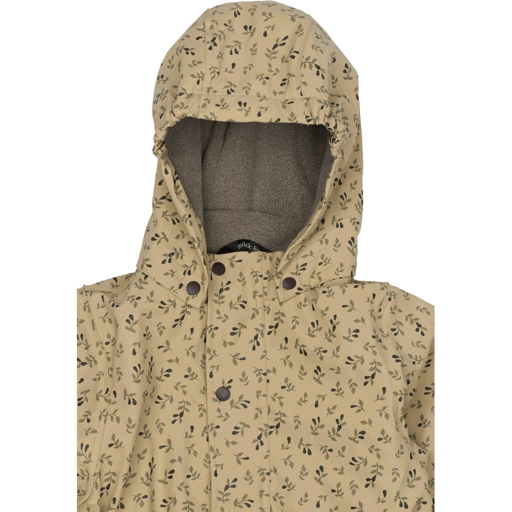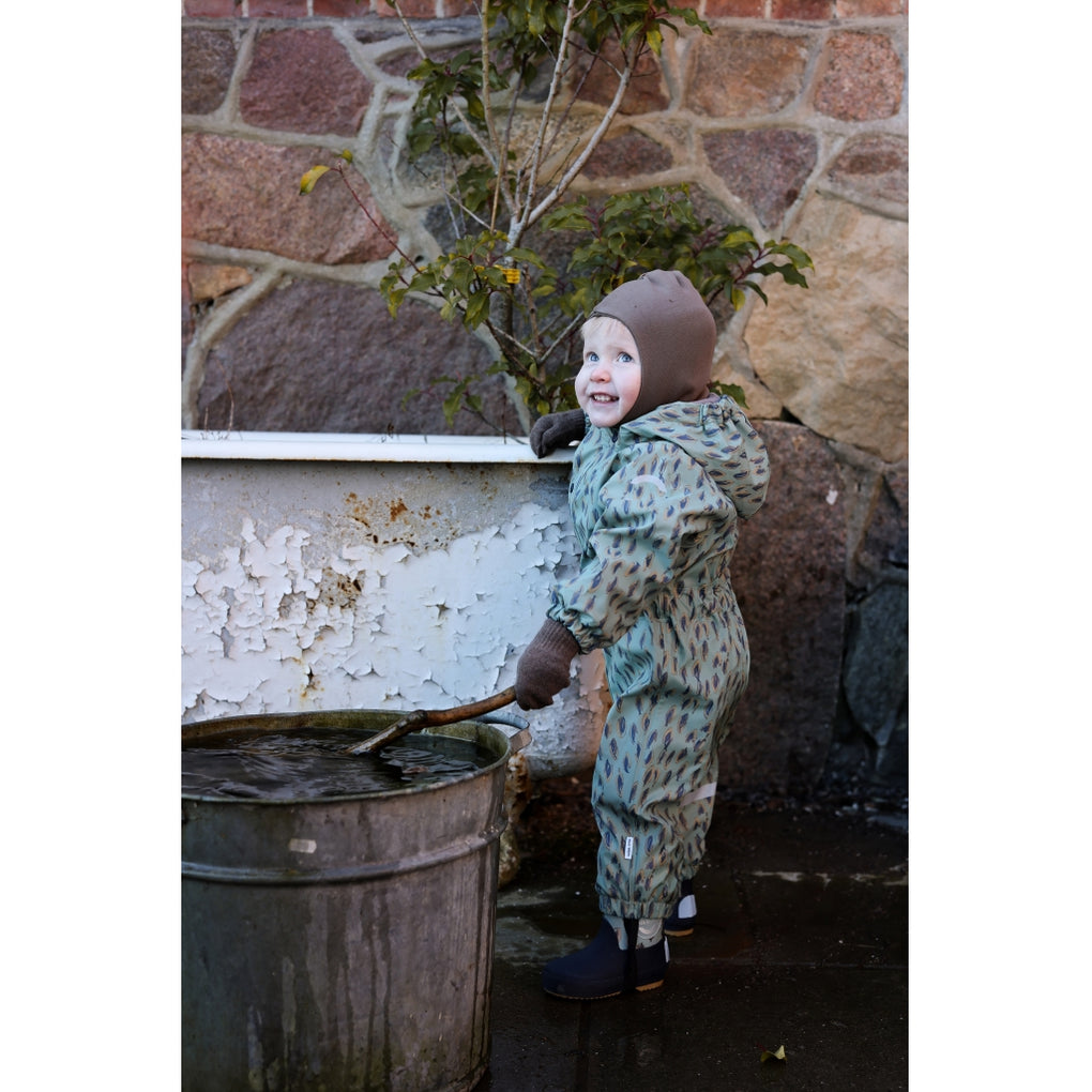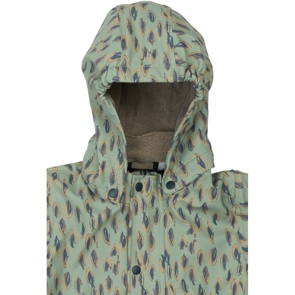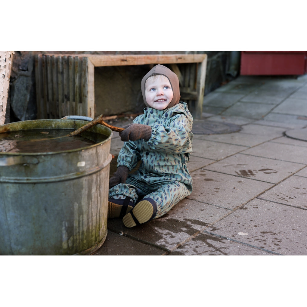 Cozy warm and printed PU rainwear suit from mikk-line, for children to have fun in the rain, jumping puddles, sliding down the wet slide, playing in the wet sandbox etc. In this warm rain suit the child will be fully covered and have free movement without any water or wind getting inside the suit.