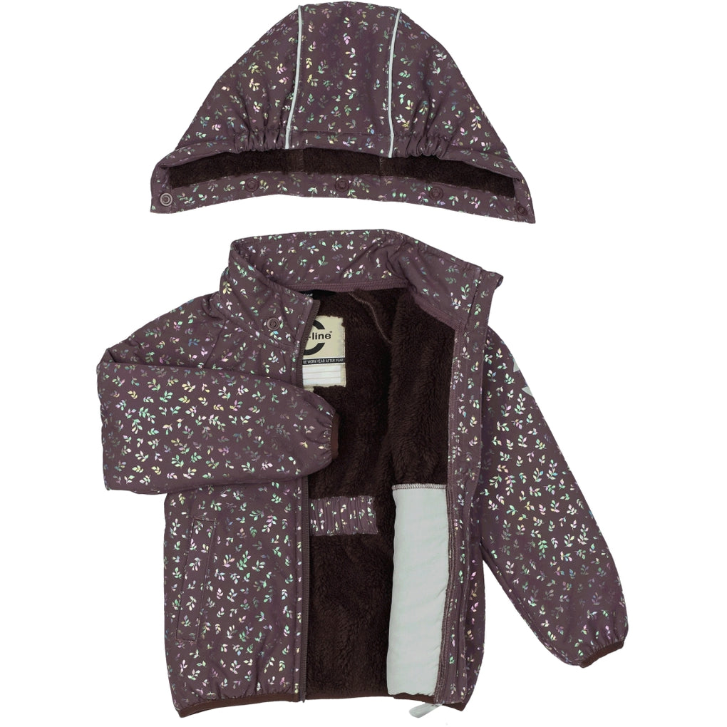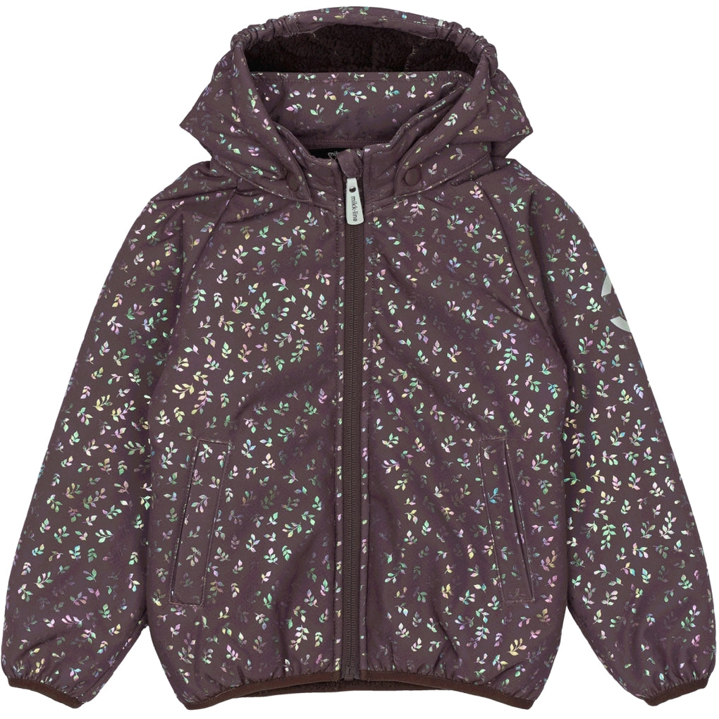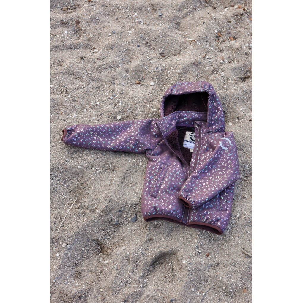 Mikk-line teddy softshell jacket with ears in a captivating nature AOP (all-over print), designed for children to enjoy outdoor activities and adventures. The outer fabric of this softshell suit contains 100% polyester. The jacket also features a name tag with room for more than one name, so please pass it on and let it be re-loved.
